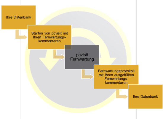 Mit pcvisit PROFI ist es Ihnen möglich, Ihre Datenbanksysteme (z.B. das Ticketsystem mit Supportfällen oder Ihre CRM-Datenbank) mit den Daten aus der pcvisit PROFI-Fernwartung zu verbinden.