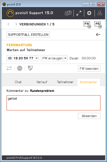 Der Fernwartungskommentar bzw. sein Vorgabewert wird im Modul angezeigt, wobei ein eventueller Vorgabewert nicht vom Supporter geändert werden kann.