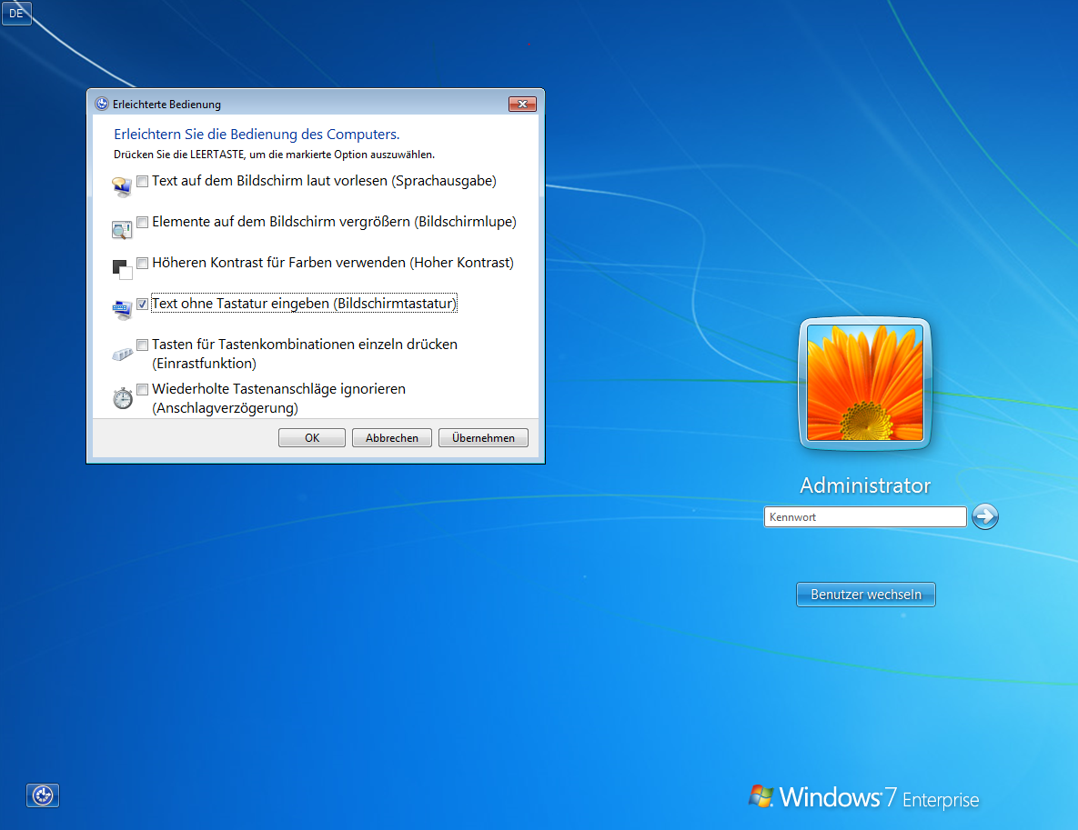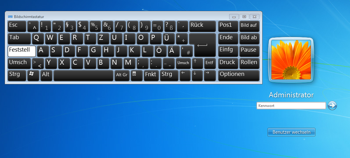 Mittlerweile bietet Windows im Login-Bildschirm eine Onboard-Bildschirmtastatur an.