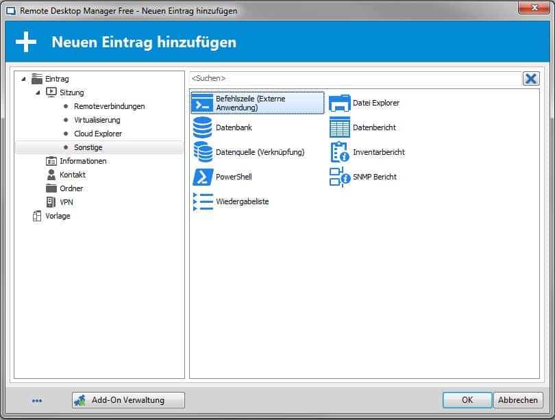Im Remote Desktop Manager muss ein neuer Eintrag erstellt werden.
