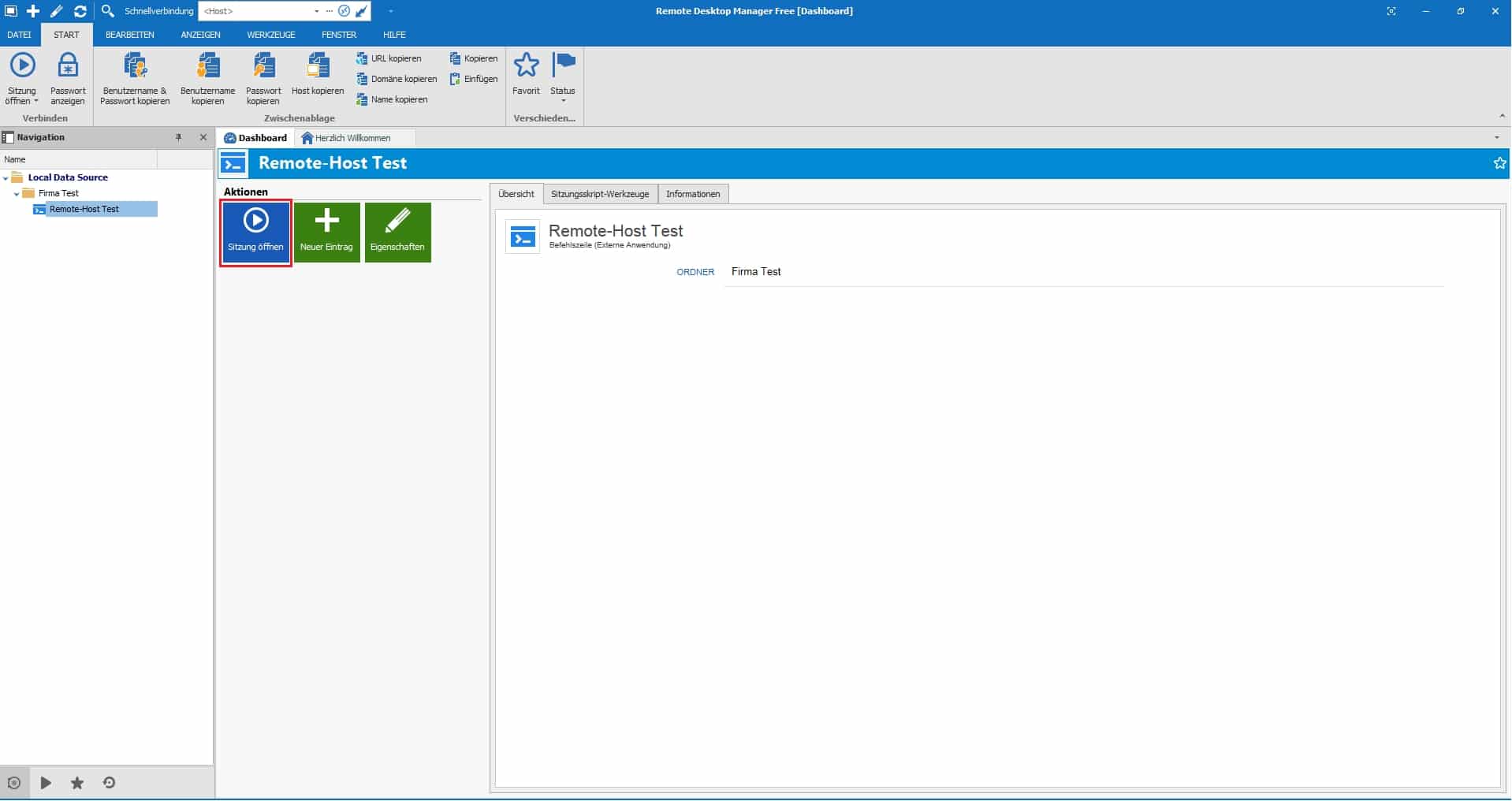 Nachdem alles eingerichtet wurde, kann nun über den Button “Sitzung öffnen” die Fernwartung zu dem Remote-Host begonnen werden.