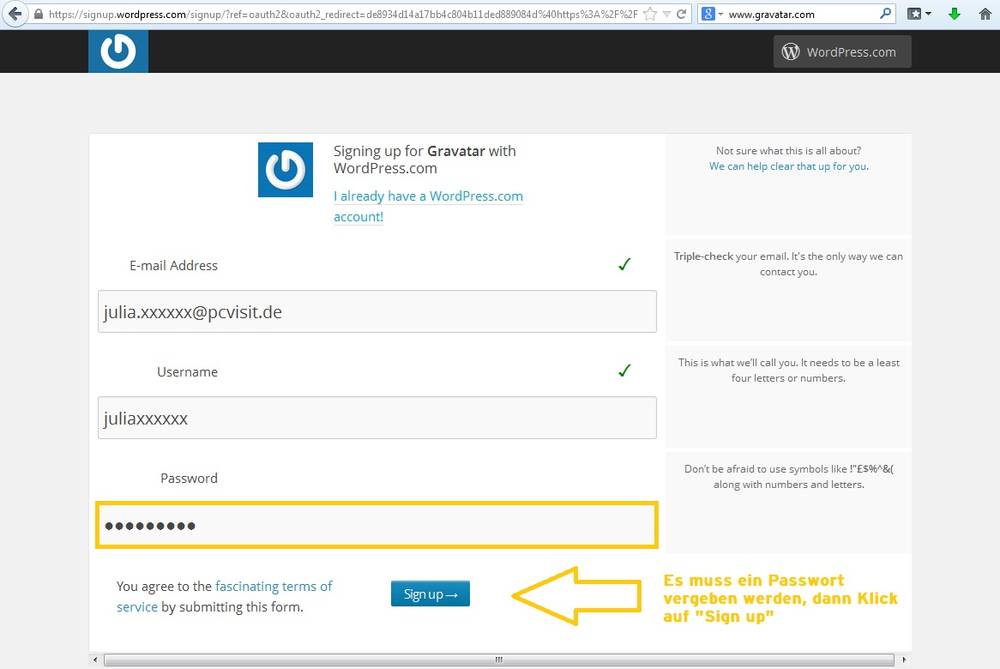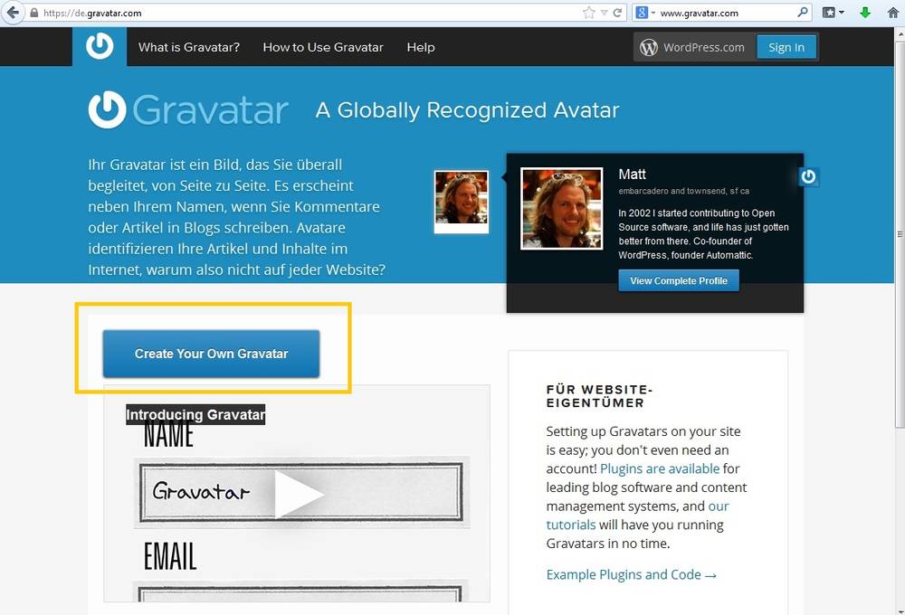 Hinweis: Mit der Einrichtung eines Gravatar-Kontos stimmen Sie den AGB’s des Dienstanbieters zu. Diese finden Sie hier.