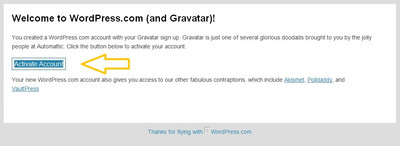 5. Um Ihr Gravatar – Konto zu aktivieren erhalten Sie eine E-Mail an Ihre hinterlegte E-Mail Adresse. Bestätigen Sie den Link "Activate Account"..