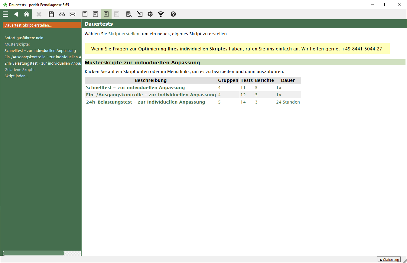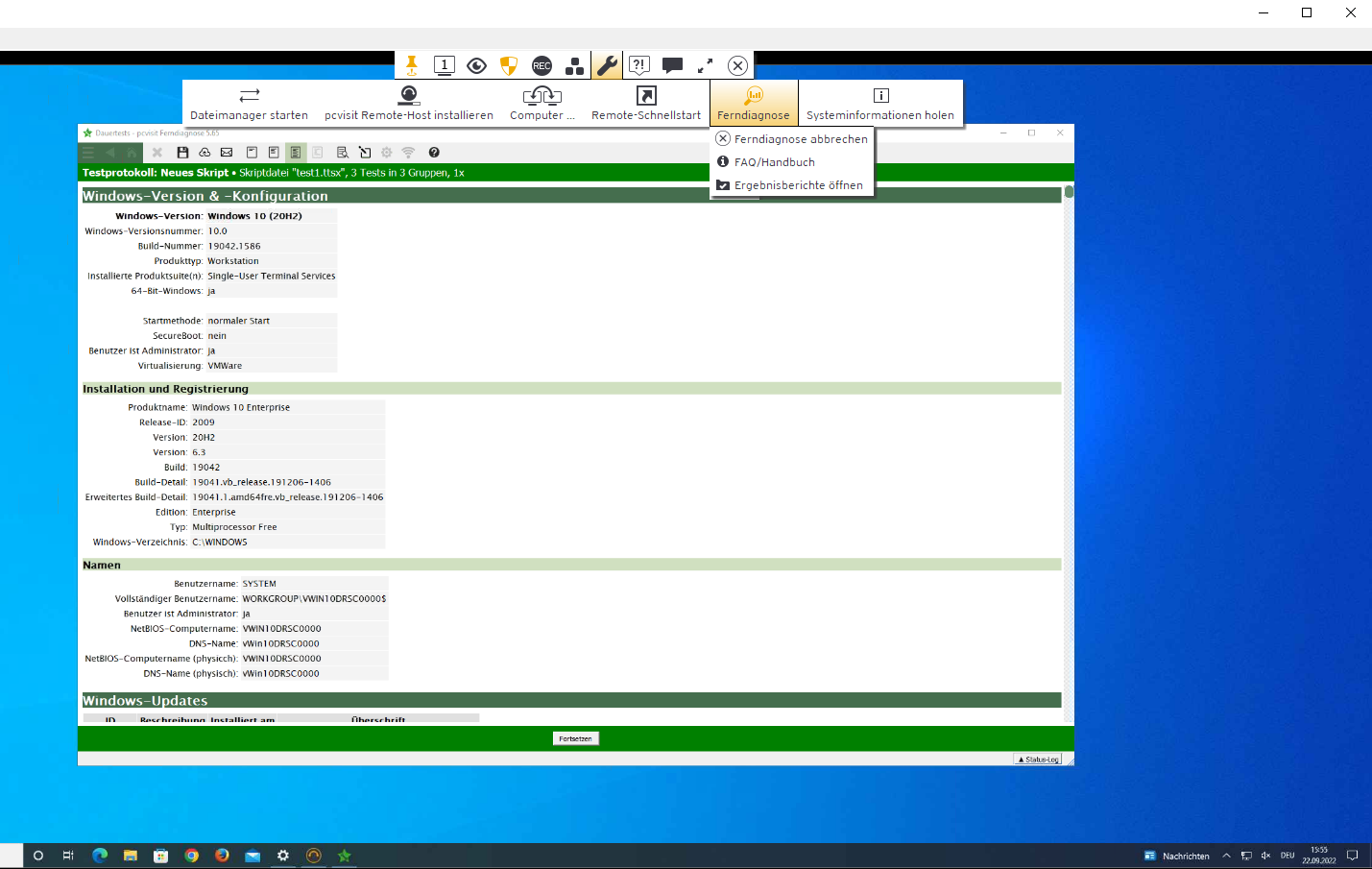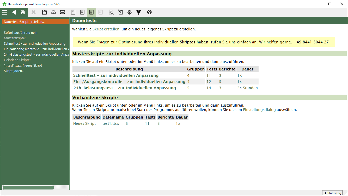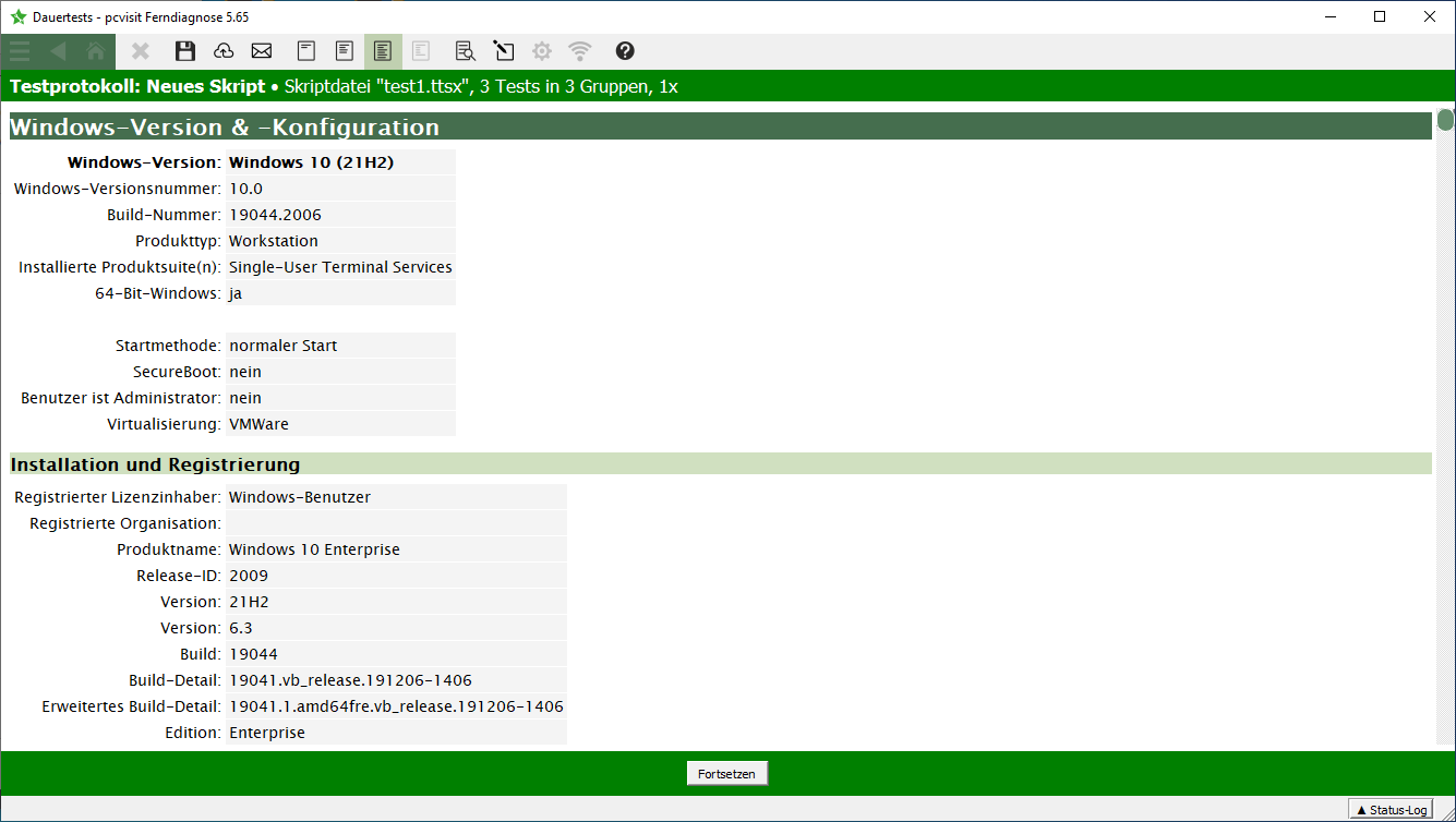 Die Testresultate sind zu finden unter (Start im Protokollverzeichnis): \pcvisit\Ferndiagnose\Neues Skript