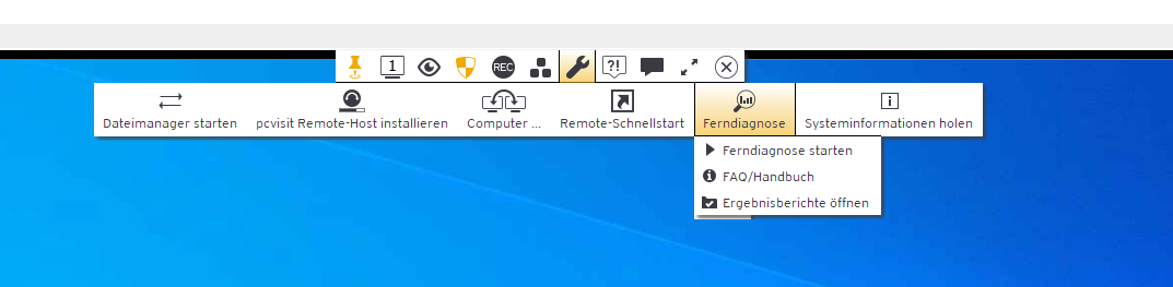 pcvisit Ferndiagnose starten im Viewer-Menü während der Remote-Sitzung
