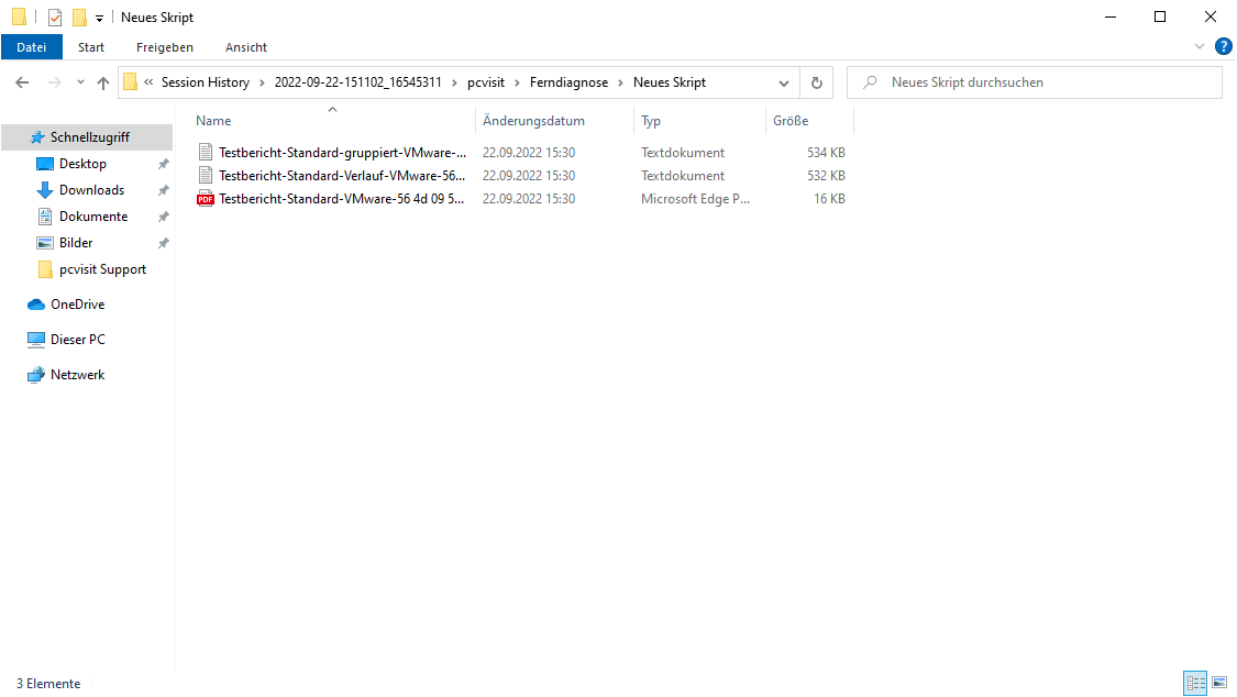 Nach der Ausführung des Skriptes werden die Ergebnisse vom Kunden-System zu Ihnen übertragen und in Ihrem lokalen Sitzungsprotokoll-Ordner gespeichert.