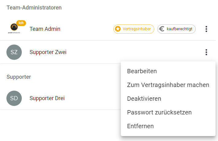 Über das 3-Punkte-Menü hinter dem Namen des Nutzer haben Sie außerdem noch die nachfolgenden Möglichkeiten: