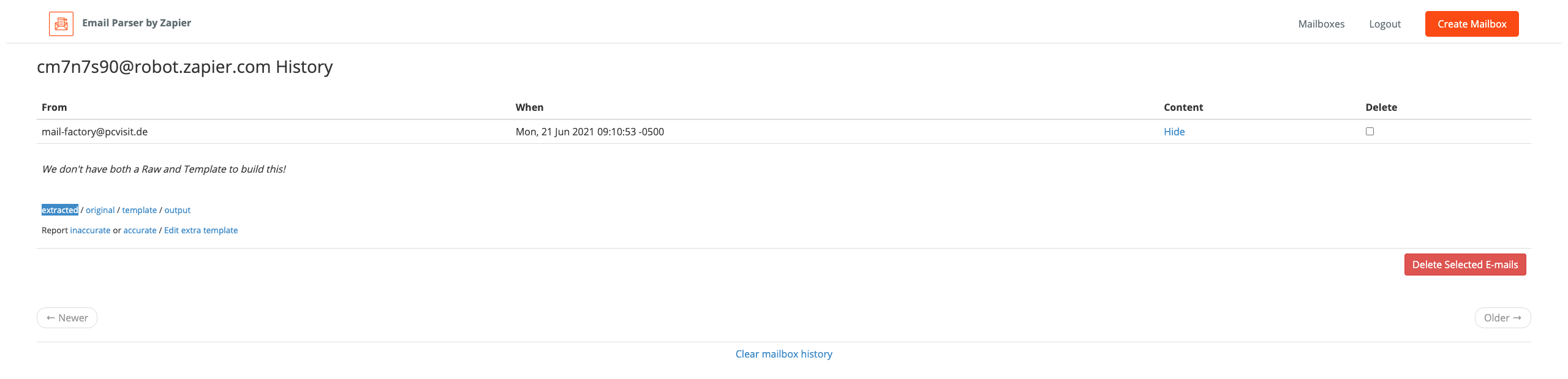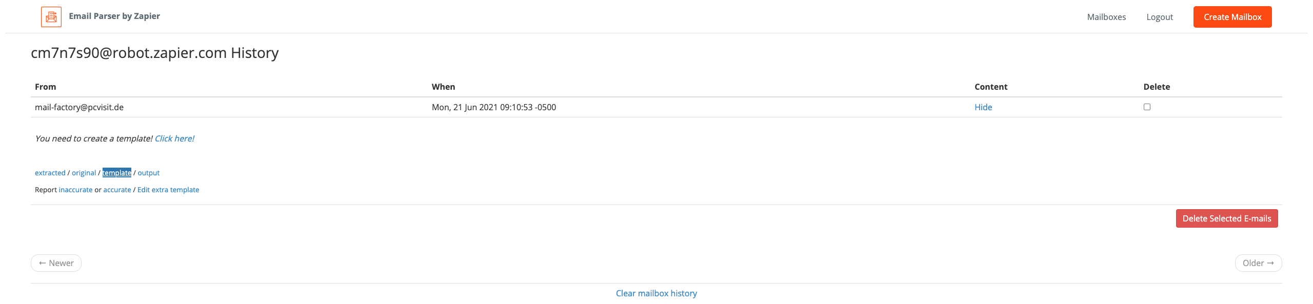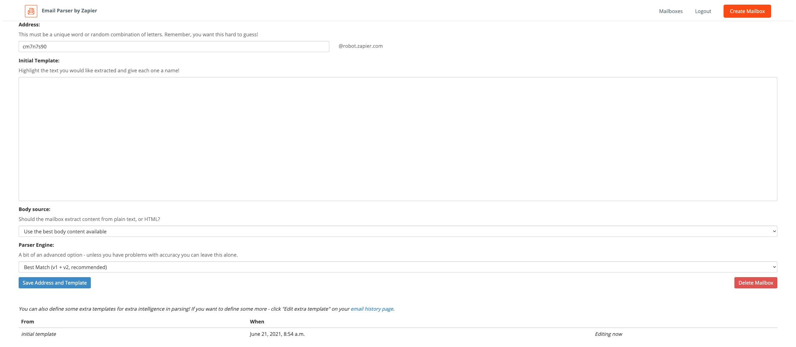 8. Falls noch keine Mailbox eingerichtet ist, öffnen Sie nun https://parser.zapier.com/ (Link unterhalb des Auswahlfeldes).