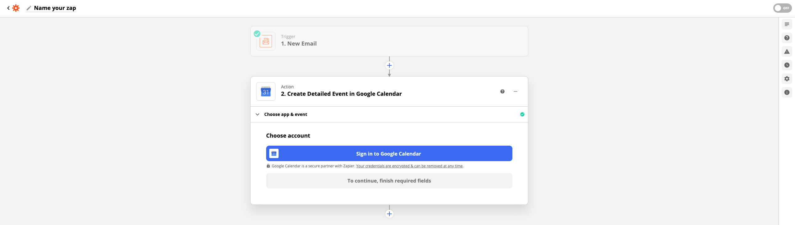 22. Verknüpfen Sie nun Ihren Google Calendar Account mit Zapier über Sign in to Google Calendar.